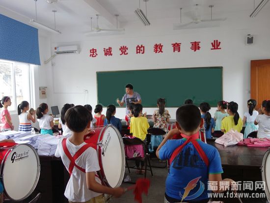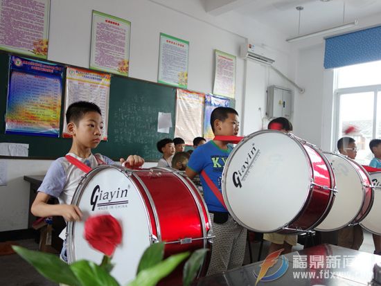 炎炎盛夏,每天三个多小时的艰苦训练却抵挡不住孩子们学习的热情,他们用顽强的精神克服了困难。在老师们辛勤地指导下,鼓号队已初显成效,已经完成了多套基本曲目。