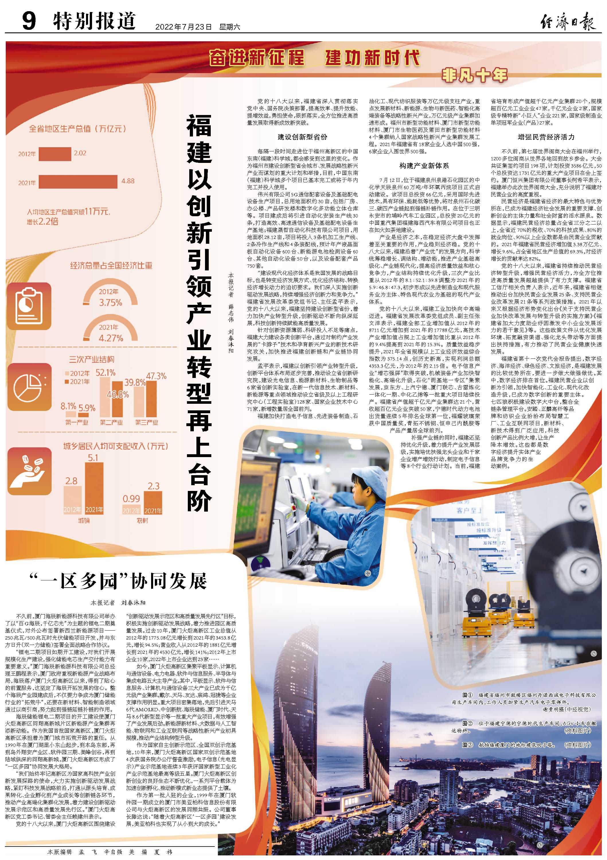 7月23日,经济日报推出专版,发表了《福建以创新引领产业转型再上台阶》《“一区多园”协同发展》两篇文章。