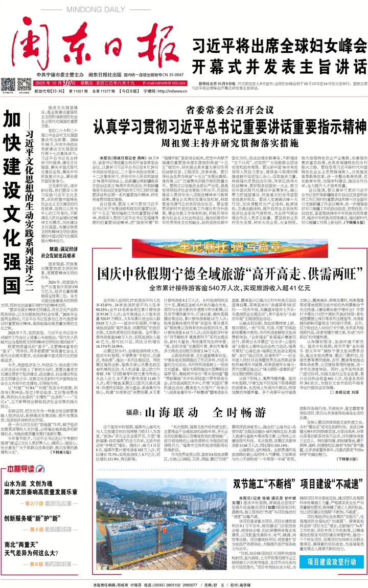 全市纳入监测的27家酒店平均入住率82.07%,24家旅游民宿平均入住率90.55%;全市13条美食街区累计接待游客97.98万人次;全市高速出入口客车流量320.87万辆次,火车站累计进出站人数59.03万人次……国庆中秋假期,宁德全域旅游呈现“高开高走、供需两旺”的良好态势,文旅热度再创历史新高。全市累计接待游客逾540万人次,实现旅游收入超41亿元,按可比口径,同比分别增长16.37%和24.98%。 从景区到乡村,全域旅游持续火热 国庆中秋假期,宁德聚焦“年轻化、沉浸式、体验感”,推出一系列主题活动。传统景区推陈出新,福鼎太姥山风景名胜区AI机械狗互动、无人机送餐、登山助力外骨骼、VR飞行眼镜等科技元素为传统山水注入活力,8天累计接待游客11.68万人次;周宁鲤鱼溪景区以国风沉浸式演绎、非遗民俗体验、烟火盛会、美食集市为核心,构建“日夜联动”消费场景,8天累计接待游客8.2万人次。 福鼎太姥山 图源:景区供图 周宁鲤鱼溪 图源:周宁文旅 陆淑华/摄 乡村旅游同样活力十足,蕉城区金蛇头村举办融合光电、烟花与水面光影的非遗展示和光影舞,以及双节博饼嘉年华、灯谜长廊、趣味答题擂台等活动,累计接待游客超12万人次;柘荣县靴岭尾村凭借“庆国庆 展非遗风采”剪纸展以及特有的秋收稻田风光,累计接待游客4.15万人次;古田县前洋村举办“双节趣前洋 集雅赏明月”系列主题活动,韵村大富翁、传统建筑写生研学营、“爱,在前洋里”创意图片展、青创市集等多元特色活动吸引游客2.34万人次。 蕉城下竹洋村 图源:王志凌/摄 从剧场到街巷,文化盛宴精彩纷呈 宁德各地在假期推出了形式多样、内容丰富的文化活动,为市民和游客献上一场场文化盛宴。 福安大剧院推出大型舞剧《丝海梦寻》 图源:今日福安 记者陈澄/摄 蕉城夜市举办“周末戏相逢”暨“琴韵蕉城”庆中秋颂祖国口琴专场音乐会 图源:大梦蕉城 陈菱舟/摄 福安大剧院推出大型舞剧《丝海梦寻》,蕉城夜市举办“周末戏相逢”暨“琴韵蕉城”庆中秋颂祖国口琴专场音乐会,古田县闽剧艺术中心开展“庆国庆”惠民演出活动,霞浦县九大馆外广场举办“八闽美食嘉年华·千鲜霞浦”暨啤酒音乐盛宴,霞浦县沙江镇沙江村中秋曳石活动温情启幕,屏南县举办“浪漫屏南YE好玩——同庆华诞,共襄盛举国庆七天乐·非遗游园会主题活动”,寿宁县举办“乡韵庆华诞”主题游园会活动。 霞浦东壁村民谣派对 图源:邓增艳/摄 从融合到创新,体验场景持续上新 “全家福安”首届福乒赛 图源:席国胜/摄 假日期间,一批“可观、可游、可感”的体验新场景集中亮相,为市民游客解锁文旅消费新体验。“全家福安”首届福乒赛激烈进行,屏南白水洋景区“白水洋·山里的海”主题水上趣味运动会热力启动,福鼎市策划“山海红途·福鼎红色旅游主题线路”、举办“铭记历史,珍爱和平”——纪念中国人民抗日战争暨世界反法西斯战争胜利80周年书画展,柘荣县楮坪乡烽火·西竹岔景区推出以“烽火晒秋·国泰民安”为主题的晒秋活动。 福鼎楮楼村 图源:福鼎市融媒体中心 福鼎嵛山岛 图源:福鼎市融媒体中心 从线下到线上,集聚传播声量 国庆中秋假期,宁德文旅不仅在线下取得亮眼的成绩单,也在线上形成内外联动、持续发酵的传播声量。多个央媒平台对福鼎太姥山、霞浦滩涂、屏南龙潭村、柘荣鸳鸯草场等地假期文旅市场的热闹景象给予关注报道。《邂逅最治愈宁德日出!你想打卡哪处?》《把宁德秋天装进相册·赏秋地图震撼上线!》等系列主题宣传,为游客提供新鲜而富有活力的旅行灵感。此外,百万粉丝达人纷纷打卡宁德,发布系列短视频作品,深度传播宁德之美,形成“内外联动”的传播热潮。 从保障到服务,旅游环境不断优化 国庆中秋假期,我市开展“金秋银冬 烟火年年”2025宁德文旅消费季活动,推出发放消费券、景区门票折扣、住宿优惠等惠民措施,古田、霞浦等地推出停车场免费、公交接驳等便民措施,进一步优化游客体验。 福鼎太姥山景区 图源:景区供图 屏南白水洋景区 图源:景区供图 同时,全市各相关部门密切协同,加强文旅行业安全监管,累计出动执法检查662人次,检查各类场所381家次,为假日文旅市场的平稳有序运行提供坚实保障。 柘荣鸳鸯草场景区 图源:景区供图