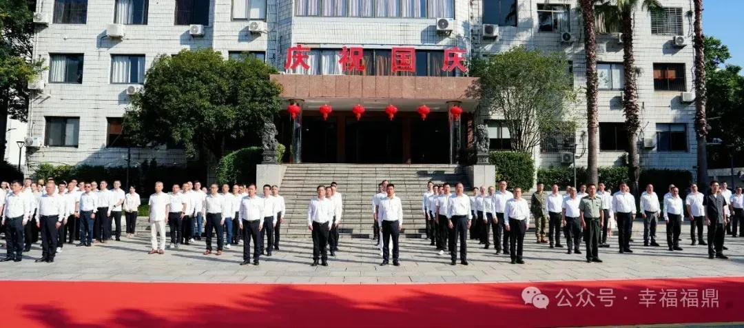 10月1日,福鼎市在市委市政府大院举行庄严的升国旗仪式,庆祝中华人民共和国成立76周年,以庄严神圣的礼仪向国旗致敬,表达全市人民对伟大祖国的深情祝福和崇高敬意。 福鼎市委书记林青、市人大常委会主任蔡梅生、市委副书记林乃平等市副处级以上在家领导干部、市直有关单位主要负责同志等参加升旗仪式。 上午8时30分,英姿飒爽的国旗手迈着铿锵有力的步伐,护卫着五星红旗昂首走向升旗台。伴随着雄壮的《义勇军进行曲》,鲜艳的五星红旗冉冉升起,迎风飘扬。现场全体人员精神饱满,庄严肃立,向五星红旗行注目礼,齐声高唱国歌,表达对祖国的热爱之情和最美好的祝愿,祝愿祖国更加繁荣富强,祝愿人民生活更加幸福美好。 举行升国旗仪式,不仅是对祖国华诞的热烈庆祝,更是一次深刻的爱国主义教育和精神洗礼,激励着大家牢记嘱托、感恩奋进,以实干和担当,全方位推动“三抓两创一目标”落实机制落地见效,为奋力谱写中国式现代化福鼎篇章作出更大贡献。 市委常委、市政府常务副市长庄超和主持升旗仪式。