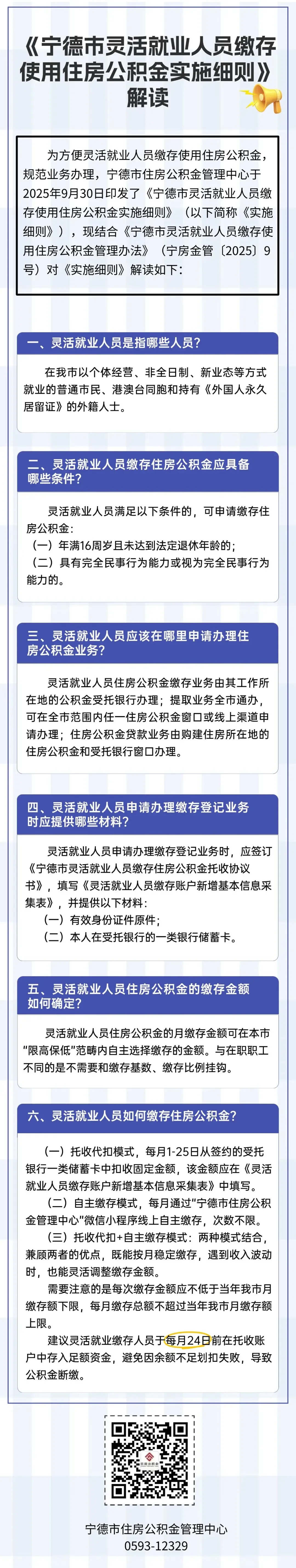 近年来,宁德市灵活就业群体规模持续扩大,为有效发挥制度普惠作用,加大对宁德市灵活就业人员住房需求的支持力度,近日,宁德市住房公积金管理委员会发布《宁德市灵活就业人员缴存使用住房公积金管理办法》。宁德市住房公积金管理中心于9月30日印发了《宁德市灵活就业人员缴存使用住房公积金实施细则》。来看相关图解—— 图解《宁德市灵活就业人员缴存使用住房公积金管理办法》 图解《宁德市灵活就业人员 缴存使用住房公积金实施细则》