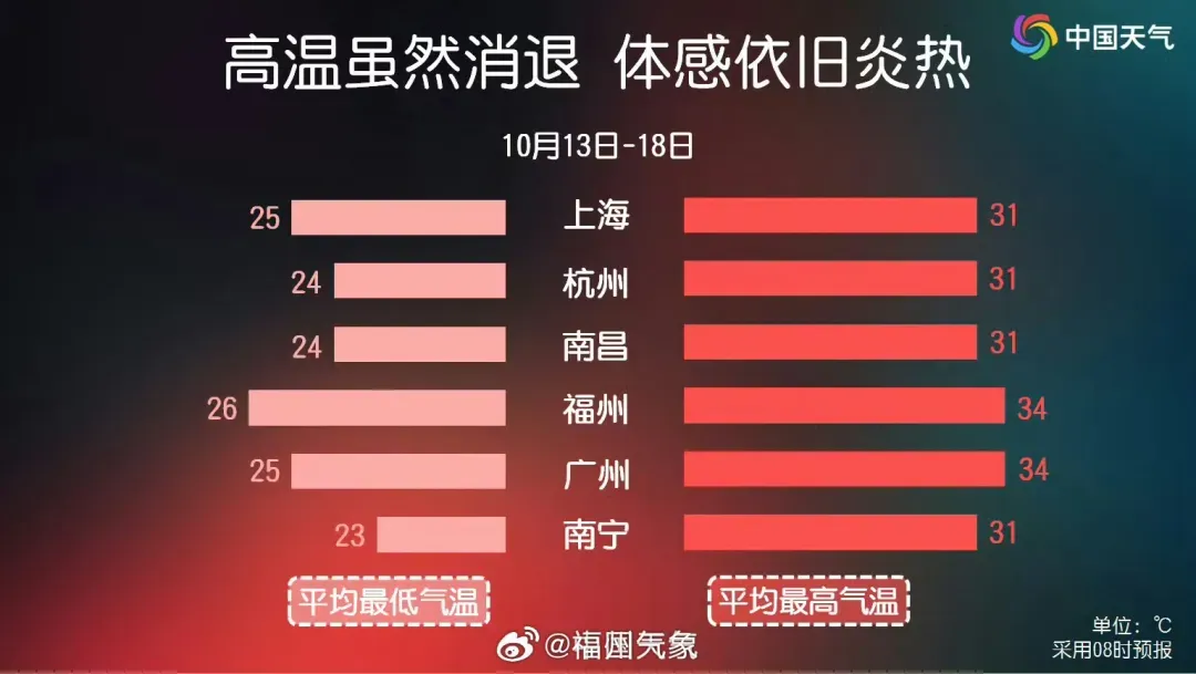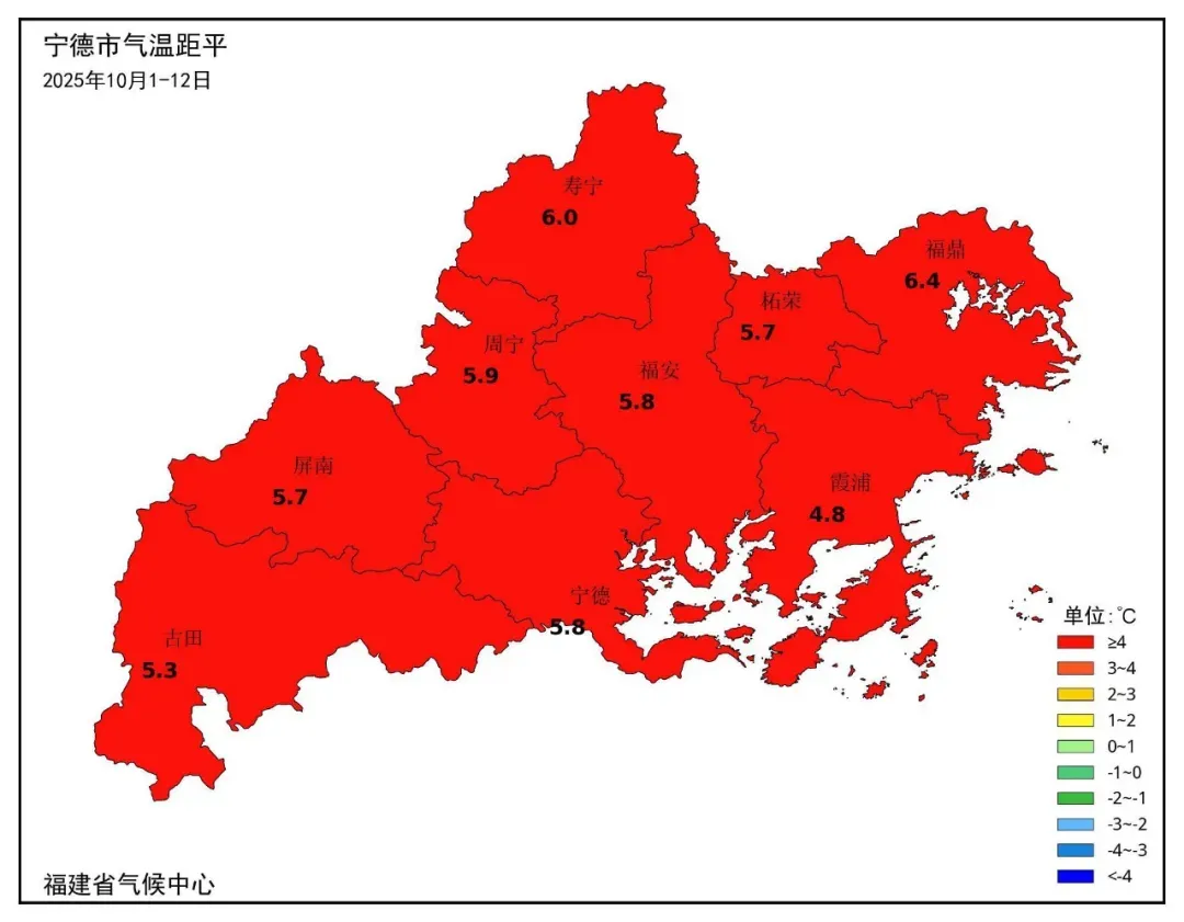今年夏天 高温“破纪录”的话题一直不断 没想到步入10月中旬 高温还在 近期 南方多地高温天气控场 江南一带最高气温远超常年 福建、浙江、湖南等地还热到破纪录 福鼎也是高温不退 想必小伙伴们 也很想问 这温度是认真的吗? 今日,鼎鼎 从福鼎市气象台获悉 福鼎的平均气温 确实较常年同期偏高 历史同期第1 2025年10月1日~10月12日,福鼎平均气温29.2°C,较常年同期偏高6.4°C,较去年同期偏高7.2°C,为1954年福鼎市有气象观测记录以来历史同期第1。最高气温34.3°C,较常年同期偏高6.8℃。日最高气温之最为36.1°C,出现在福鼎(10月5日)。最低气温25.2°C,较常年同期偏高5.9°C。日最低气温之最为23.7°C,出现在福鼎(10月11日)。 福鼎累计降水量0.2毫米,较常年同期偏少48.5毫米(99.6%),较去年同期偏少20.4毫米(99%)。为1954年以来历史同期倒数第7。日降水量之最为0.2毫米,出现在福鼎(10月2日)。雨日1.0天,较常年同期偏少2.8天。 福鼎日照时数95.9小时,较常年同期偏多36.1小时(注:基于该地区国家级地面气象观测站数据统计常年值为1991~2020年30年气候标准值。) 秋老虎持续发威 预计未来几天 福鼎市以多云到阴天气为主 市区最高气温在30°C以上 13日:多云到阴 部分有阵雨或雷阵雨 气温:25~35℃ 14日:多云到阴 部分有阵雨或雷阵雨,局部大雨 气温:24~34℃ 15日:多云到阴 局部有阵雨或雷阵雨 气温:24~33℃ 福鼎高温什么时候能终结? 看来只能等一个有实力的冷空气了 在那之前 请特别注意防暑降温 避开午间高温时段 及时补充水分