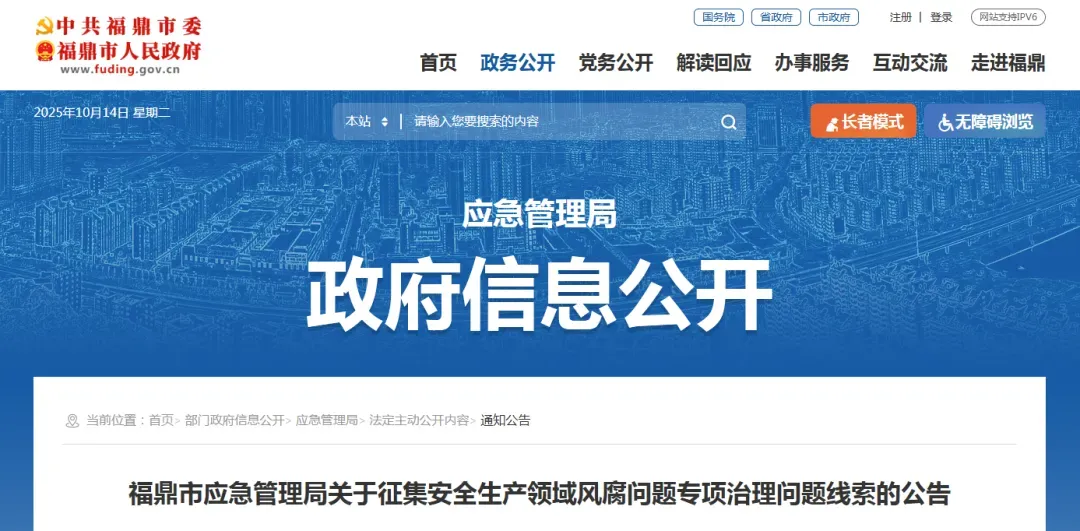 为深入推进安全生产领域风腐问题 专项治理工作 10月10日 福鼎市应急管理局发布公告 即日起至2026年1月31日 面向社会各界征集相关问题线索 为深入推进安全生产领域风腐问题专项治理工作,营造风清气正的政治生态,切实提高人民群众的安全感和满意度,福鼎市应急管理局现面向社会各界征集相关问题线索。 征集时间 即日起至2026年1月31日。 线索反映渠道 (一)举报专线:0593-7820808(工作日8:30—12:00,15:00—17:30)。 (二)电子邮箱:fjfdaj@126.com。 (三)邮寄地址:福鼎市市府路139号会议中心1层办公室(邮编355200)。 线索征集范围 全市应急管理系统安全生产领域不正之风和腐败问题,重点包括以下内容: (一)安全生产行政审批方面 1.利用行政审批权寻租牟利,违规入股企业或者庇护亲友违法经营,谋取非法利益等问题。 2.利用职务之便或影响力,违规干预或插手许可审批活动,违规指定服务机构、损害市场公平竞争环境等问题。 3.行政审批中不作为、乱作为、久拖不办等形式主义、官僚主义问题。 (二)安全生产执法检查方面 1.“选择性执法”变相纵容违规生产,收受好处对企业违法违规行为视而不见,利用职权打招呼说情、谋取私利,协助企业规避监管执法等问题。 2.利用职务之便徇私舞弊,与监管执法对象有利益来往或可能影响公正执行公务的交往,存在“吃拿卡要”行为,存在趋利性执法等问题。 3.不按规定的程序和要求执法,随意加重处罚档次、增加检查频次,随意变更处罚,隐患排查流于形式,相互推诿扯皮不作为等问题。 (三)生产安全事故报告和调查方面 1.发现瞒报、谎报生产安全事故问题,未按规定办理或一转了之,跟踪督促不力,甚至与事故企业恶意串通等问题。 2.利用职务之便或影响力插手干预事故认定、帮助逃避责任等问题。 3.事故调查中滥用职权、玩忽职守、徇私舞弊等问题。 注意事项 (一)鼓励实名举报。提倡实名反映问题线索,提供真实姓名和有效联系方式,我们对反映人员信息予以保密,依法保护反映人合法权益。 (二)线索具体详实。反映的问题线索应具体、详实,包含但不限于涉及问题人员、事件发生的时间地点、主要过程描述等,以便核实处理。 (三)如实反映情况。反映人应当如实反映情况,对所反映的内容真实性负责,不得虚构、夸大、捏造事实,不得借机诬告、陷害他人。对捏造事实、诬告陷害他人的,将依法追究法律责任。 (四)征集范围限定。除全市内应急管理部门安全生产领域不正之风和腐败问题之外的其他问题不予受理。其他行业监管领域事项请依法依规按程序向有关部门提出。举报应急管理部门监管的生产经营单位涉嫌重大事故隐患和安全生产违法行为的,请通过应急管理部安全生产举报系统或12345政务服务便民热线等渠道反映。 福鼎市应急管理局 2025年10月10日