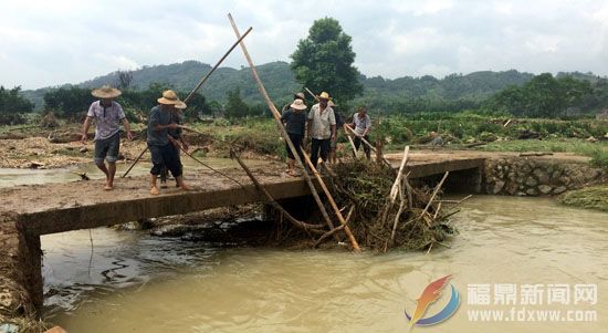 此次特大暴雨导致马洋溪水位暴涨,马洋溪下游的二座路桥也被上游倾泻而下的杂物裹得严严实实,树木连根漂浮并卡在沿线桥墩下,情况十分危急。14日上午,该镇迅速组织力量及时对江美村段的两座桥下的封堵树木进行清理,保证溪流通畅。
