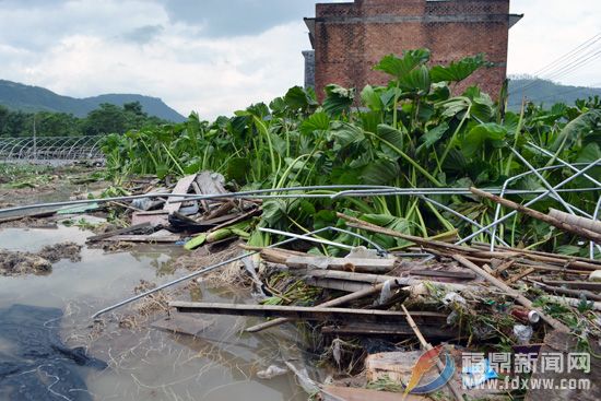 强降雨导致该村河水暴涨,漫过防洪堤坝,冲毁反季节草莓钢架结构大棚80亩,槟榔芋田160亩、稻田130多亩,生姜50亩,地瓜200亩,茶叶和水果受灾面积近百亩,烧烤铺、土菜馆、农家乐、激情漂流项目等休闲农业设施损毁严重。全村直接经济损失200多万元。