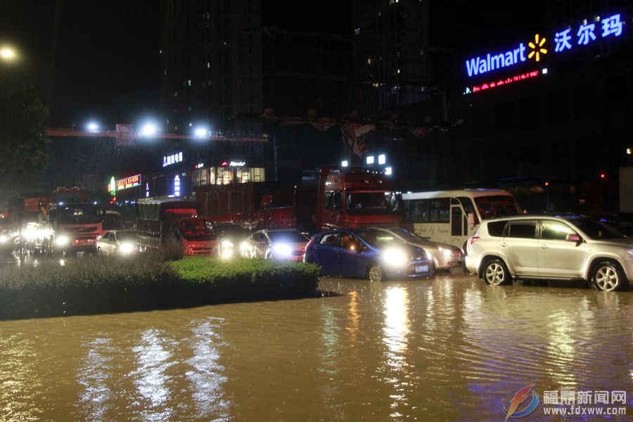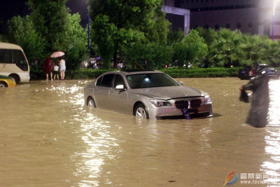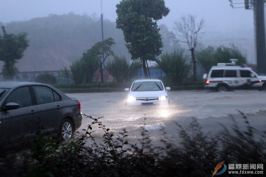车在玉龙北路支道开了才短短1分钟左右时间,记者就被眼前的景象惊住了。前方道路已经被积水淹至半个轮胎高,一些车子冒险前行,更多的则与记者一样踌躇不前,停在半坡上。过了短短10分钟左右时间,水就积地越来越深,从半个轮胎高到一个轮胎高,后面保持等待态势的车越来越多。渐渐地,整个车道都被堵住了。这时,天开始打雷,一下下,一下下,福鼎这座城市被“曝光”了好几次。记者慢慢意识到这绝非是简单的一场大雨,极有可能带来许多次生灾害。手机不时接到一些同事朋友家人的问候,有人劝记者离车避险,有人建议掉头行驶。可是很多司机朋友们都停在这个车道上,根本没有机会掉头,也不能下车。