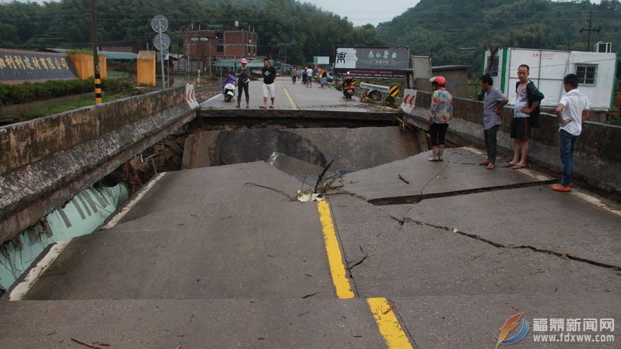 8月13日下午18时许,973县道沿白线福鼎市点头镇马洋村路桥垮塌,当地政府接报后随即赶赴现场,组织抢险、应急工作。当地派出所、村建等有关部门紧急封桥,并派人通宵值守。由于发现及时,没有出现人员伤亡情况。目前,交通、公路等相关部门已派技术人员严密监测桥身的安全。