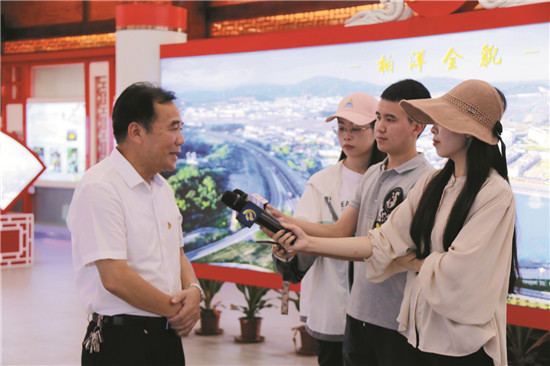 随后,记者团走进柏洋村乡村振兴展示馆,细致了解柏洋村的发展历程。在乡村振兴展示馆中,记者还对柏洋村党委书记王周齐进行采访,进一步了解柏洋村近年来的变迁与未来规划。