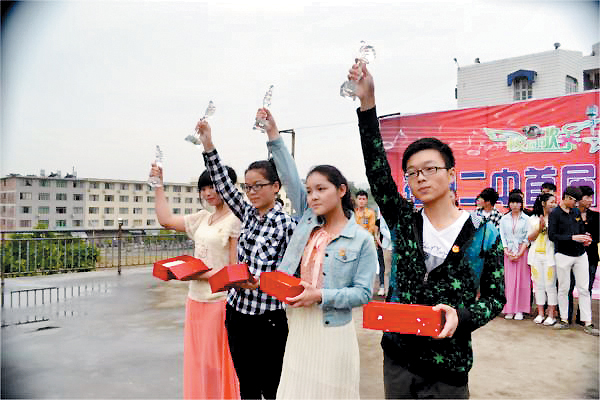 陈一玲,目前华语乐坛一颗冉冉升起的明星,她在学校的第一次“名气”,就是十年前在福鼎二中一年一度校园文艺晚会小小舞台唱出来。正因为福鼎二中重视素质教育,能根据学生的特长,充分挖掘学生潜能,给了陈一玲们提供施展才华的机会,比如今年学校十佳歌手大赛,竟然会吸引300多名“快乐男生”、“快乐女生”参赛,真不知下一个陈一玲会是谁。据悉,多年来,福鼎二中积极组织艺术教育教学特色活动,开发《畲歌》《民族乐器》等校本课程,开展二胡、竹笛、葫芦丝、巴乌等民族乐器进课堂工作,开设书法选修课,成立学生作品展示中心,组织艺术特长生高考升学提高班及画社、民乐队、武术队、街舞队、吉它社等自发性艺术兴趣小组,在丰富多彩校园艺术活动中不断提高学生的审美意识和艺术素养,营造良好的文化氛围。近四年,共有上百名学生考取音乐、美术、书法本科,走出一条符合校情的艺术教育发展道路,在高中多样化办学方面作了尝试,“让每一个学生都有成才的机会”。在采访中,罗成标副书记自豪地告诉我们,他的学生中不仅有陈一玲,还有新生代画家林建、书法博士梅学味等,这些都是学校艺术教育多年结出的硕果之一。