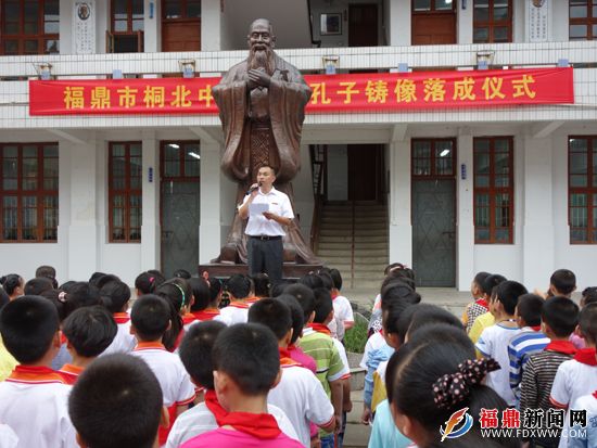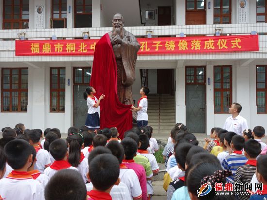 为更好地传承和弘扬国学,提高校园文化品位,近日,桐北中心小学隆重举行孔子铸像揭幕仪式,学校2000多名师生参加揭幕仪式。