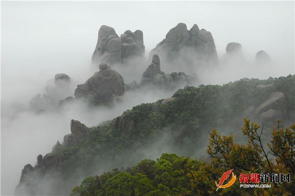 “云横断壁千层险”是太姥奇峰的真实写照。主峰高达917米,从海上看,雄浑险峻,如一巨屏拔地而起,气势壮阔。登高以观沧海,海似澄玉,岛若明珠、帆影点点、鸥鸟翩翩……无不尽在目下。由于海洋上空水汽充沛,每当晴天早晨,海湾、山麓云雾升腾,如柔缦轻纱,在山谷中缭绕,时聚时散,瞬息多变,蔚为壮观;峰顶出露云海之上,时隐时现,出没无常,宛如人间仙境;在黎明前的黑暗过后,东海天际一线微露鱼肚白,继而变红,随之一轮红日从海平线下喷薄而出,冉冉升起。此情此景直让人欣喜莫名!