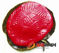 红龟是福鼎传统的特色小吃,当地人再熟悉不过的了。椭圆形,扁平状,极似一只鲜红的龟,因此而得名。“红龟”里面是棕黄色的馅,底下粘着一两张柚叶。闻起来有淡淡的柚子香和馅料的甜香,咬上一口柔软细腻,香甜可口,粘中有酥,酥中带软。