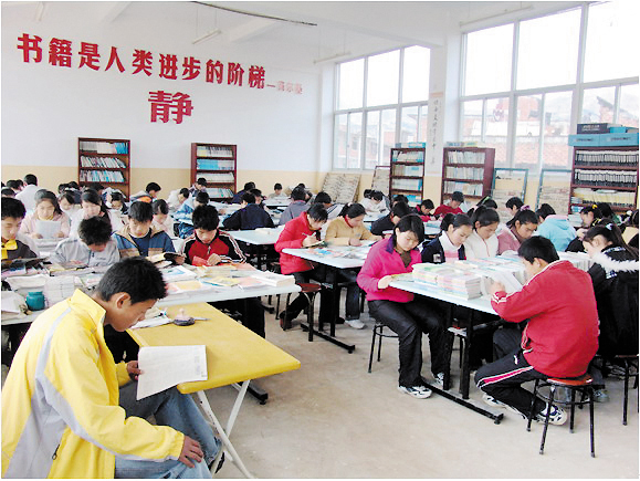 每天中午、晚上在阅览室里都挤满了前来看书学习的学生。
