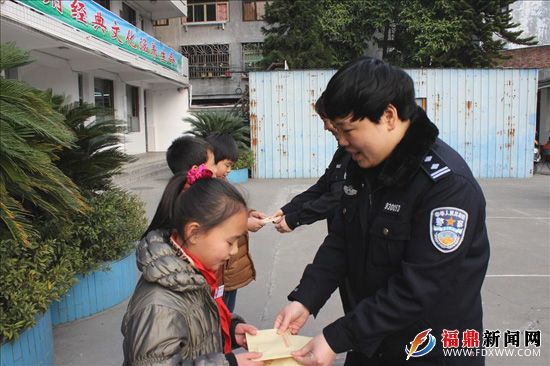 在元旦、春节两节即将来临之际,日前,市公安局妇女委员会组织女警官专程来到流美中心小学,看望慰问结对帮扶的3名贫困留守儿童学生,给他们送上一人一千元的慰问金,详细询问了这些孩子的学习、生活情况,鼓励孩子们以积极的心态面对生活、刻苦学习、勤俭自强,并提前为他们送上新年的祝福。受捐助的学生感谢这些“警察妈妈”一直以来对他们的关心、照顾,表示自己在今后的日子里一定认真学习,立志成才,学会感恩,报效社会。