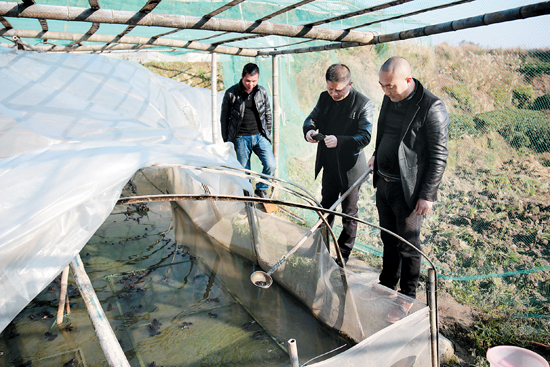 “虽然已进入冬季冬眠期,但每天依然要投放饵料1—2次。”正在基地里面喂养牛蛙的上洋自然村陈加种说,今年年初,他以土地流转的方式加入了上洋辉谷平康生态农业专业合作社,并被聘用为长期员工参与专业养殖,一个月能挣到2000元左右,加上土地流转加入合作社,土地流转又可以分得到合作社红利,比起种庄稼那是强多了。