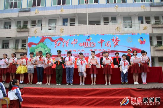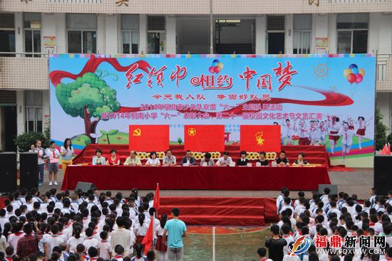 本报讯(刘端莉 许婵媛)5月31日上午,我市团市委、市教育局在桐南小学开展“红领巾相约中国梦——今天我入队 争当好队员”既2014年福鼎市少先队欢度“六一”主题队日活动。福鼎市政府调研员许文斌、李逸洲,市教育局副局长李家卫,福鼎团市委副书记杨瑜参加了活动。