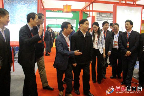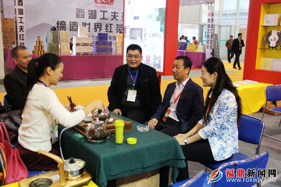 福鼎市领导陈兴华、杜玉梅与福鼎参展企业交流