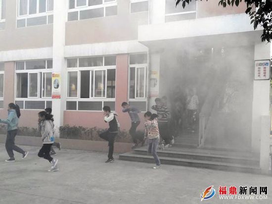 “撤离”,一声令下,400多名师生按照日常的逃生疏散路线迅速而有序地撤离教学楼,用时1分钟36秒。