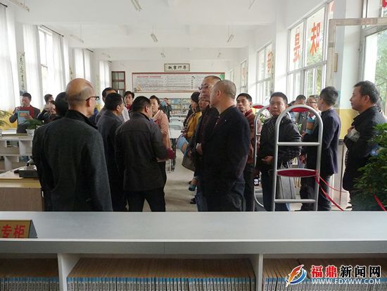 11月13日下午,在福鼎市教育局副局长李家卫的陪同下,柘荣县教育局领导及各中小学校长一行三十多人莅临福鼎十二中考察、交流工作。校长吴董邦向各位来宾介绍了十二中创建“书香校园”的情况,并与他们交流建设校园文化的经验。(张良秀)