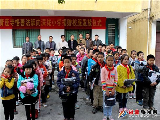 12月1日下午,贯岭镇青莲寺悟善法师在市教育局长赖思宋、教工委副书记方唯通等陪同下,到深垅民族小学,向该校每一名学生捐赠一套专门定制的校服以及书本文具等学习物品。深垅民族小学是一所实行学费、伙食费、住宿费全免的农村寄宿制小学,目前,学校61个学生,中半数以上来自外乡村,其中孤儿一人,来自特困家庭的14人,悟善法师一直以来热心慈善事业,近年来已为我市农村贫困学生捐赠助学金50多万元。