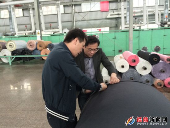 市发改局局长杨文生(右一)走访福建省隆祥皮革有限公司