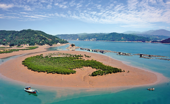 这片土地是神奇而美丽的:静静伫立神秘的马栏山,福鼎史前文明的发祥,是她亘古的灵魂,意蕴悠悠;巍巍的鸡冠山脉,莽莽的鲤鱼群峰是她挺立的脊梁,雄奇秀丽;宁静的港湾,是她敞开的胸膛,无私宽广;川流不息的潮汐,是她奔腾的热血,澎湃着生命的情怀;栖身海滩的红树林,是她摇曳的身姿,捧出四季的苍翠,诉说生命的顽强和不屈。
