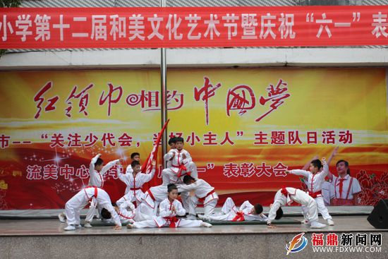 六一国际儿童节当天,团市委联合市教育局在流美中心小学举办“红领巾相约中国梦——关注少代会 当好小主人”主题队会日活动,通过召开庆祝六一表彰大会,表彰市、校先进集体和个人、举行内容丰富、形式多样且富有趣味性的“阳光下成长”为主题的游园活动和展示学校文化艺术节成果的精彩文艺演出等形式庆祝2015年“六一”国际儿童节,迎接第七次全国少代会的召开。活动中,孩子们像一只只快乐的小鸟,在充满趣味性的游园活动中,尽情的蹦着、跳着,乐在其中。文艺汇演内容丰富、形式多样,有武术、独唱、古筝合奏、讲故事、舞蹈、歌曲串烧等8个精彩节目,近一个多小时的演出精彩纷呈,把主题队日的活动推向了高潮。