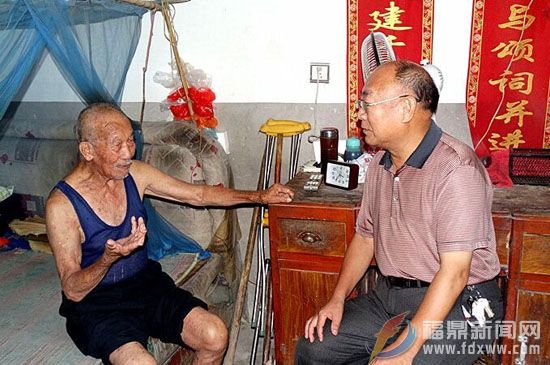 \'八一\'节前夕,为了表示对为中华民族解放事业和保家卫国做岀贡献的抗战老战士的敬仰,福鼎市慈善总会会长李宗廉一行,来到山前街道兰田村,看望94高龄的抗战老兵黄景娥老人,送上慰问金2000元。慈善总会在\'八一\'期间还对本市10位抗美援朝、越战的特困老兵,每人送上1500元们慰问金。