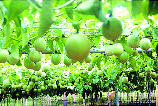 继续徒步向前,很快一片绿色海洋尽收眼底,女村支部书记说:“这就是松洋百香果生态果园。”