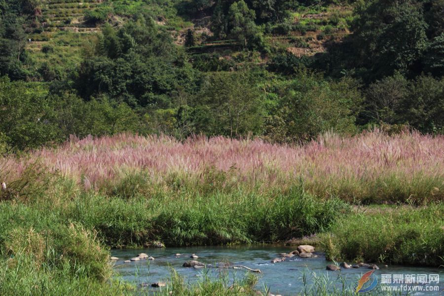 每年农历九月中旬左右,叠石库口溪滩迎来她一年中最美的季节。远远望去,满目青山中,蓝天白云下,一条蜿蜒的溪流向东缓缓流淌在福鼎人母亲河---桐江的上游,夹溪两岸首先映入你眼帘的是一大片一大片淡红色的花海,如此夺人眼球的花海,便是河漫滩上成片的芦苇花。