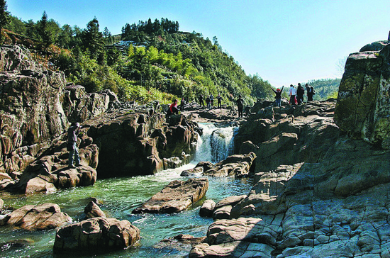 溪谷不长,仅三公里,但在这短短的距离内浓缩了“石林”、“石滩”、“冰臼”、“深潭”、“瀑布”几个方面景观。