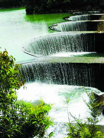 穿越层层如高的峡谷中盆景,到达溪头水库。水库大坝乃是省内罕见的U形连拱坝。当水位漫过堤坝而下时,犹如珠帘。