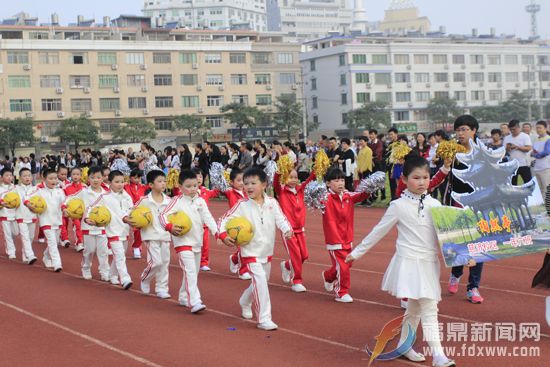 福鼎新闻网讯(林莹莹)11月18日,市桐南小学第二十二届田径运动会在市体育馆开幕,本次运动会以中国名胜文化为主题。在开幕式上,来自桐南小学72个代表团向现场观众展示了我国72个名胜风景区,每个方阵各举一块介绍各个风景名胜情况的展板,一位同学介绍该名胜古迹的历史和文化。