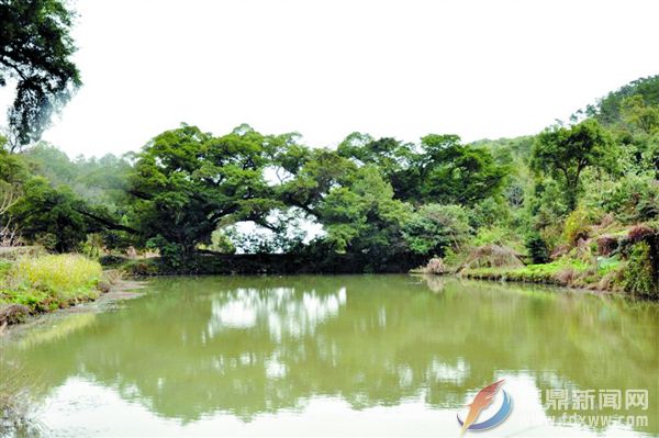 榕树掩映下的池塘