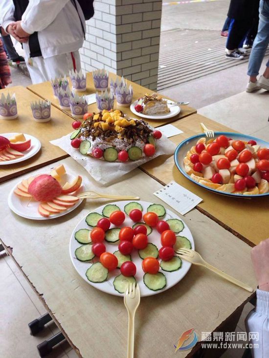 本报讯(刘端莉 陈常锋)3月12日,我市第六中学于德馨楼一楼大厅内举办第四届校园美食节活动。同学们自己购买食材并动手制作出各式各样诱人的水果拼盘和蛋糕,让人大开眼界。