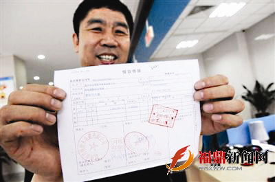 6日下午,龙湾农村合作银行小额保证保险贷款发放仪式在天河支行举行。图为温州市月球胶木电器有限公司陈先生的第一个签单,他6日下午拿到了借款借据。金鱼 摄