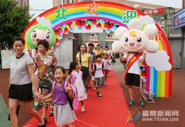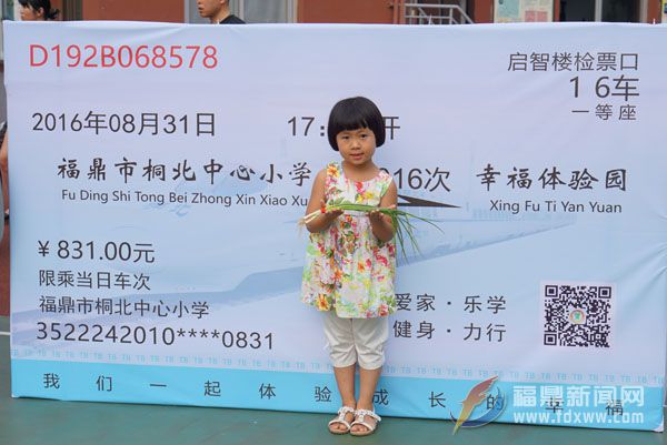 在隆重的开学仪式上,家长们亲自给孩子们戴上光荣的桐北中心小学校徽后,全体新生还秉承尊师重道之精神举行了拜师礼。孩子们也怀着对老师的崇敬之情,行了鞠躬礼。在热情洋溢的节目表演中,全体一年级新生一起乘上桐北幸福号动车,叩响“知识大门”。