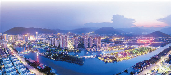 夜幕降临,座座建筑物上的霓虹灯逐渐点亮,光晕隔着树、隔着桥,撒落水面,继而有了水中星的光景,烘托出无染的夜景。