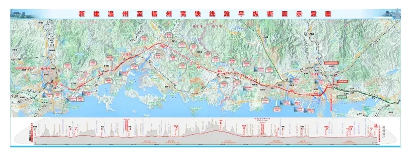记者从中国国家铁路集团 有限公司获悉 9月29日 新建温州至福州高铁 (以下简称新建温福高铁) 开工建设 计划2030年建成通车 东南沿海铁路通道及相关线路布局示意图 新建温福高铁是国家“八纵八横”铁路网沿海高铁通道的重要组成部分,是国家“十四五”规划102项重大工程项目和“两重”标志性项目。项目建设对促进我省全方位推动高质量发展,建设海两岸融合示范区,打造21世纪海上丝绸之路核心区,加强与长江经济带快速联系等具有重要意义。 新建温福高铁正线线路起自杭州至深圳高铁的乐清站,经浙江省温州市,福建省宁德市、福州市,接入福州至厦门高铁福州南站,新建正线全长约303公里,设计时速350公里,建设工期5年。全线共设11座车站。其中,福建段正线全长203.8公里,福建境内共设车站7座(福鼎西、柘荣、福安南、宁德、罗源、连江、福州南)。 温福高铁示意图 新建温福高铁与已开通的福州至厦门高铁、广州至汕尾高铁、汕头至汕尾高铁,正在建设的漳州至汕头高铁,规划的宁波至温州高铁,将组成新的更高标准的宁波至广州高铁通道,路网地位十分重要。项目建成后,将与2013年全线贯通运营的既有杭州至深圳高铁,形成联通温州与福州的高铁双通道,进一步压缩东南沿海城市间时空距离,密切长三角与粤港澳大湾区的联系,极大便利沿线人民群众出行,对于加快推动长三角地区一体化发展和“海丝”核心区建设,具有十分重要的意义。