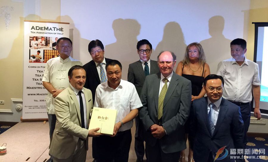 当地时间2015年8月9日,意大利米兰世博会中国茶文化周闭幕式暨百年世博中国名茶评选颁奖晚会上,中国茶叶流通协会副会长、福鼎茶业协会副会长、福建品品香茶业有限公司董事长林健代表“福鼎白茶”公共品牌上台领取“百年世博中国名茶金奖”。