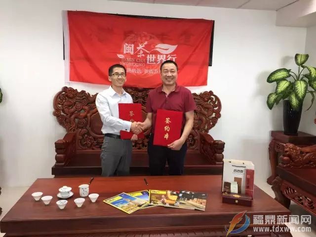15日下午,“闽茶世界行”柬埔寨站暨《闽声》杂志柬埔寨落地发行会战略签约活动在柬埔寨福建商会举行。活动现场,杂志社代表梅晓敏、闽茶中国行茶企代表林健等分别与福建商会会长刘雷立签署合作协议,为闽茶在柬埔寨的推广发展共同努力。