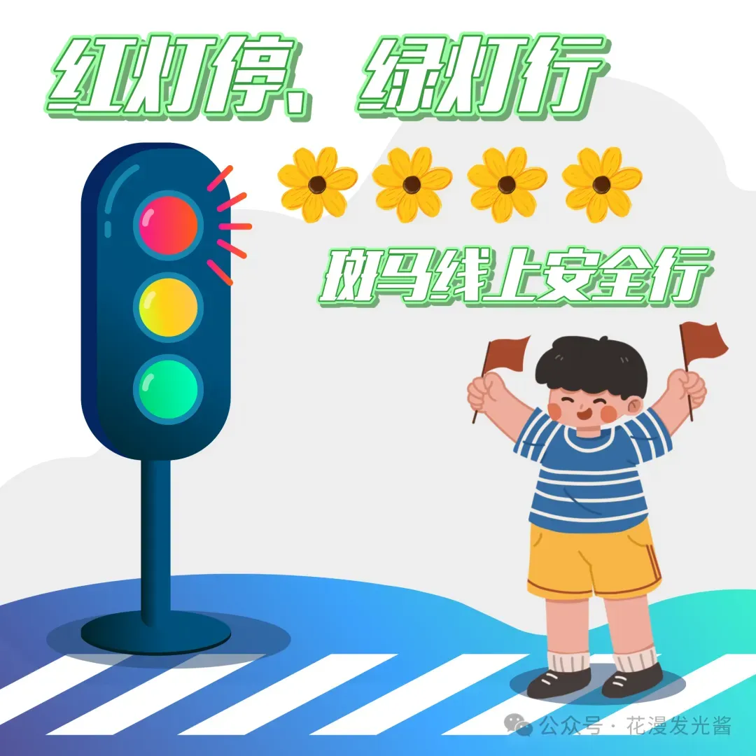 “红灯短暂,生命无限”,交通安全是每个人出行的必修课。信号灯虽小,却关乎生命安全。据世界卫生组织(WHO)统计,全球每年约135万人因交通事故丧生,其中23%的事故与不遵守交通信号灯直接相关。在中国,公安部交通管理局数据显示,2022年因闯红灯引发的交通事故占比12.7%,导致1.2万人伤亡。今天,我们通过四张知识卡片,结合真实案例与数据,带您重温交通信号的核心要点,让安全常伴左右! 1.信号颜色有深意,牢记规则保平安 1.红灯禁止,生命第一 “红灯停”是最基本的交通法则。2023年北京一起交通事故中,一名司机因抢红灯撞上横向行驶的电动车,造成 **1死2伤**,最终被判全责并承担刑事责任。 中国每年因闯红灯导致的死亡人数约3000人,平均每天8人 因此丧生。 2.绿灯可行,也要谨慎 绿灯代表通行,但起步前仍需观察路况。2022年上海某路口,一辆公交车绿灯起步时未注意行人,撞倒一名横穿马路的老人,赔偿金额超 50万元。 提醒:绿灯亮起后3秒内是事故高发时段,因司机或行人急于通过而忽视观察。 3.黄灯警示,切勿抢行 黄灯是过渡信号,但部分司机将其视为“加速信号”。2021年深圳一起案例中,一辆轿车抢黄灯与左转货车相撞,司机当场死亡。 数据:黄灯期间事故占城市交通事故的 18%,超速抢行是主要原因。 4.黄灯警示,切勿抢行 蓝色标志多为指示性标志(如人行横道、单行道),需严格按照指引通行,确保秩序。 2023年杭州一名司机因逆行单行道被扣 3分并罚款200元,同时引发拥堵被路人举报。 2.斑马线前守规则,文明出行显素质 红灯停 绿灯行 斑马线上安全行 斑马线上安全行”:过马路时务必走斑马线,并遵循信号灯指示。即使绿灯亮起,也要左右观察,确认无车辆闯灯后再通过。 2022年广州某斑马线处,一名行人低头看手机闯红灯,被右转车辆剐蹭致骨折,医疗费用超10万元。 数据:中国每年约5000起 斑马线事故,其中70%因行人或司机分心导致。 应对策略: 行人:夜间过街可穿反光衣物,举手示意司机注意。 司机:斑马线前提前减速至30公里/小时以下,礼让行人。 车让人 人快行 安全要靠大家行 车辆礼让,行人快行:司机在斑马线前应主动减速,行人则需快速通过,避免滞留。 杭州“7·12”斑马线惨案 事件:一辆SUV在未减速的情况下冲过斑马线,撞飞正在过马路的母子三人,导致1死2重伤。监控显示,司机全程低头看手机。 后果:司机因“交通肇事罪”被判 **有期徒刑5年,赔偿 238万元,驾照永久吊销。 北京外卖骑手撞倒老人 事件:外卖骑手为抢单加速通过无信号灯斑马线,将一名70岁老人撞至颅内出血,医疗费用超40万元。 责任判定:骑手承担全责,平台因其违规派单制度被罚款20万元。 深圳“低头族”司机悲剧 事件:一名司机在斑马线前未减速,撞倒一名小学生致其双腿截肢。交警调查发现,司机事发时正在刷短视频。 社会反响:该案引发全网声讨,深圳市随即开展“车不让人”专项整治,一月内查处1.2万起违法行为。 3.安全口诀心中记,规范行为成习惯 卡片中的小口诀简单实用,不妨背下来: 1.红灯停,绿灯行,黄灯亮了等一等 2.蓝色标志要遵守,斑马线上安全行 3.规范在心莫大意,平安出行每一天