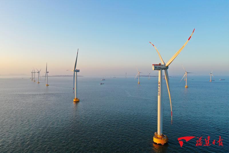 位于莆田市秀屿平海湾的省重点工程福能三川海上风电项目。本报记者 林辉 通讯员 郑启团 摄