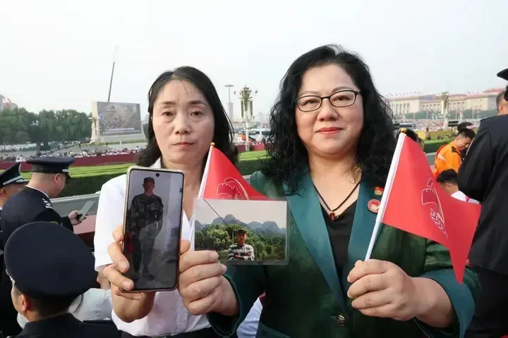 陈祥榕烈士的母亲姚久穗(左)与王伟烈士的妻子阮国琴合影。
