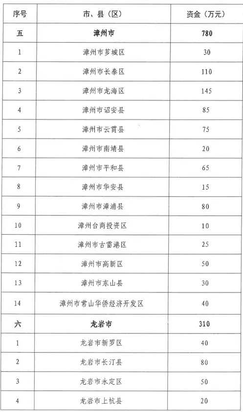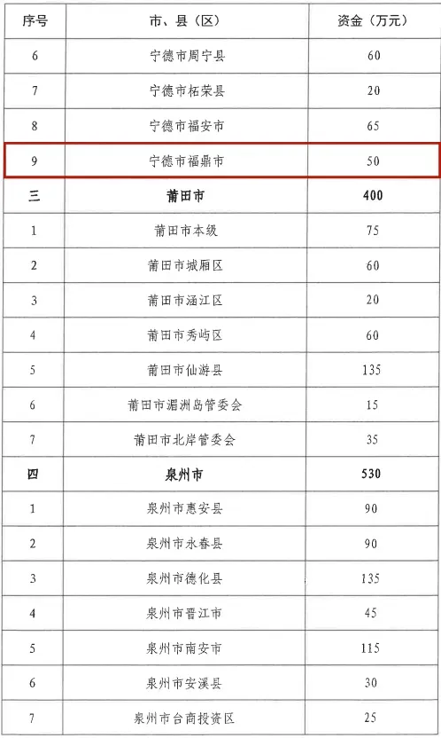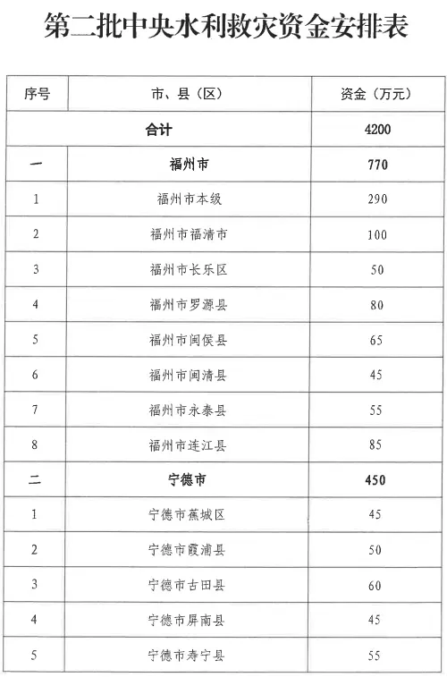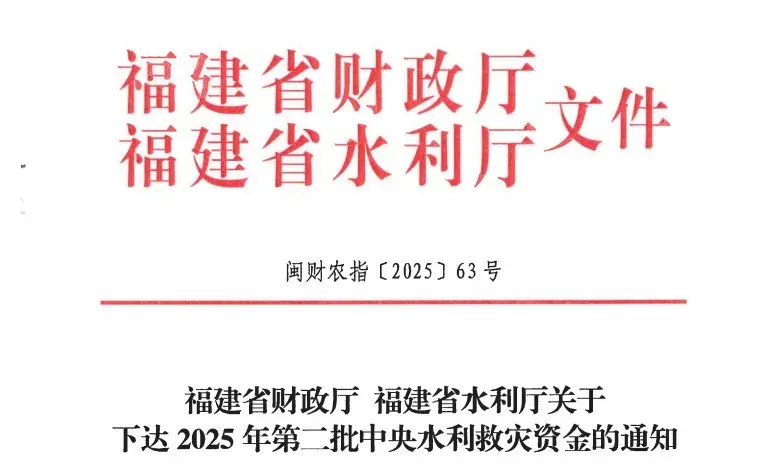 近日 福建省财政厅 福建省水利厅 发布关于下达2025年 第二批中央水利救灾资金的通知 资金分配如下