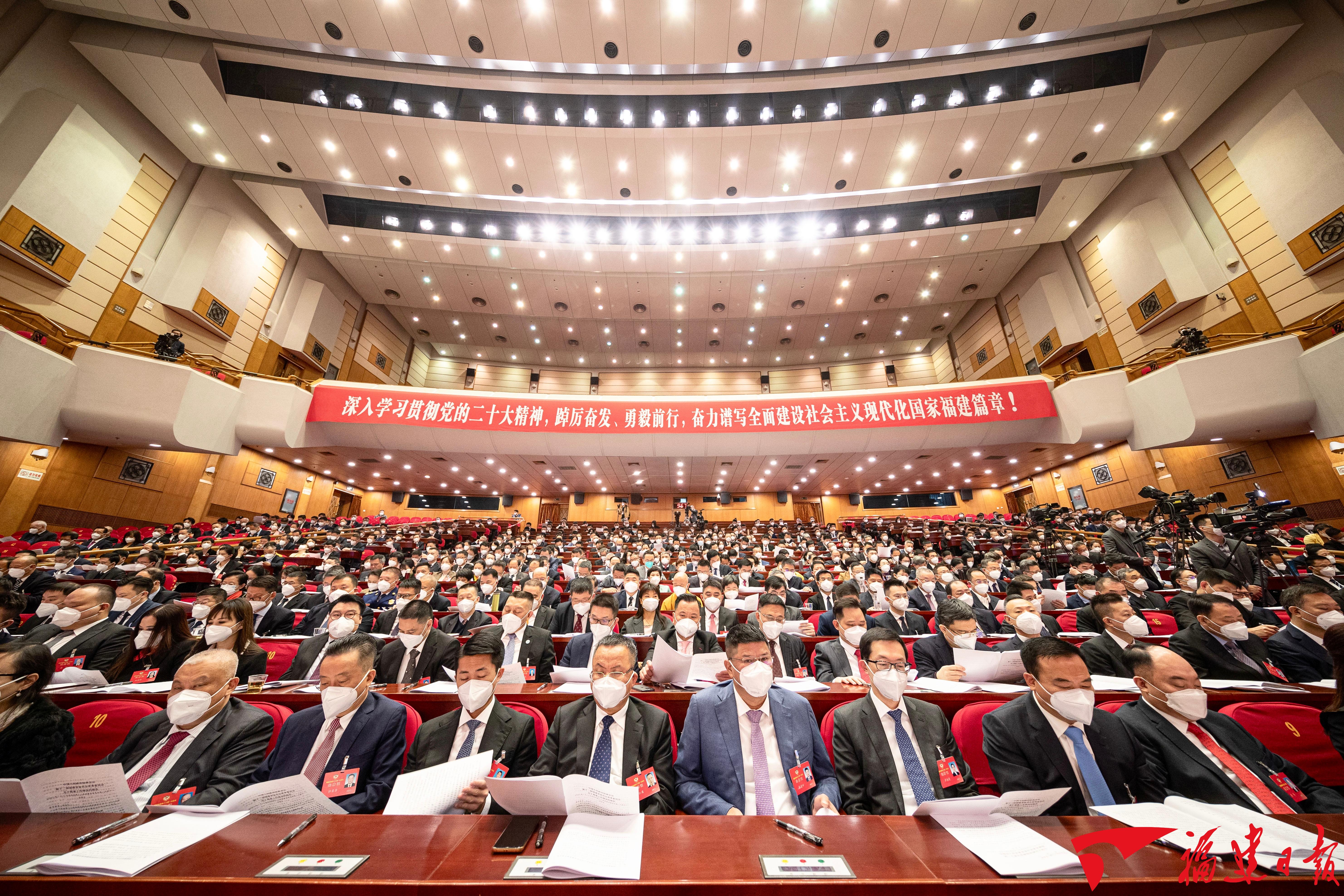步履坚定,奋发昂扬,委员们健步走进福建会堂。本届省政协委员应出席554人,实到487人,符合政协《章程》规定。