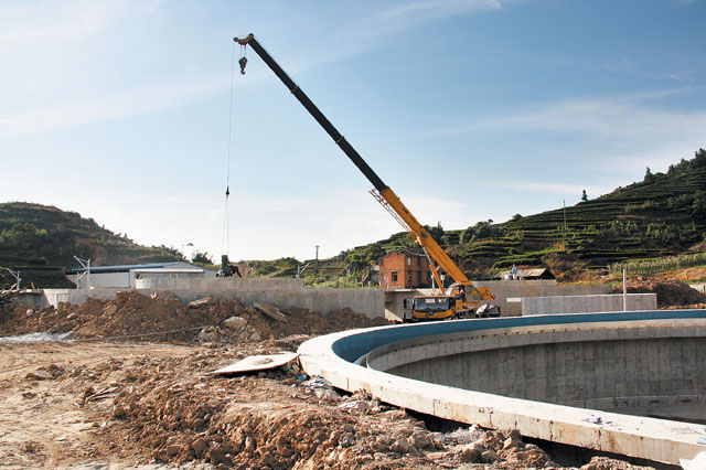 7月8日,在太姥山镇污水处理厂施工现场,工人们在紧张有序的安装电机设备。目前工程已完成主体工程建设,管网铺设完成9.8公里。正在进行污水厂区设备安装、综合楼装修、主干管道铺设。预计7月份完成设备安装、综合楼装修,8、9月份进行设备调试,10月份完成管道铺设及开始试生产。 易闻 摄
