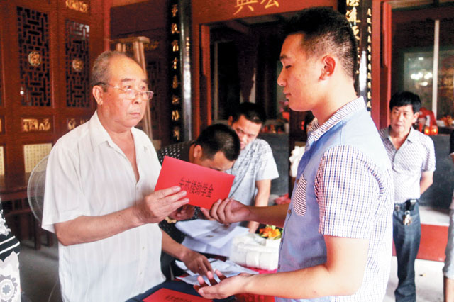 从此,老先生每年都要资助多名贫困学生,每年的暑期也是老人的繁忙的时节,老人在前期调查摸底的基础上,还会在假期逐一实地走访,审核确定受助名单,保证将每一分钱送到最需要的贫困生手里。在朱老先生的帮助下,已有40余名学生顺利入学,现就读于中国人民公安大学、福州大学等高等学府。今年,老人在资助本村贫困大学生的同时,还捐助8万元给福鼎市金钗溪朱氏德贤助学基金会。