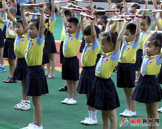 幼儿园操场上的教师、幼儿精神振奋,步伐一致,比赛按“服装统一、精神饱满、队列整齐、动作到位”四个标准进行打分。在早操教学中,老师们在音乐的选择和内容的编排上都充分运用独特的创意巧妙地编排,把队形变换、体能锻炼、合作游戏、舞蹈等多种形式的活动项目融入一体,衔接自然、动静搭配,既注重了身体运动与情感兴趣相结合,又体现了幼儿的年龄差异和个体差异,实现了自主性。
