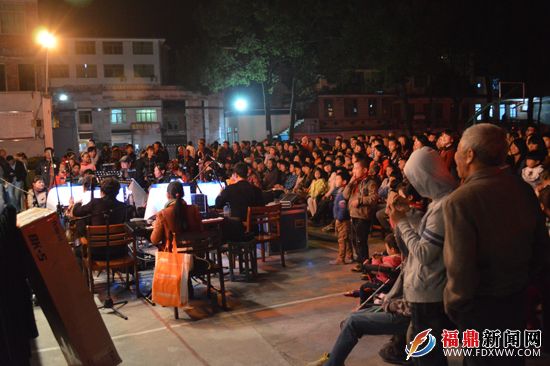 10月29日晚,福鼎市越剧团送戏下乡演出在福鼎八中操场举行,演出吸引了众多周边群众前来观看,让群众们在家门口就能欣赏到别具特色的越剧演出。